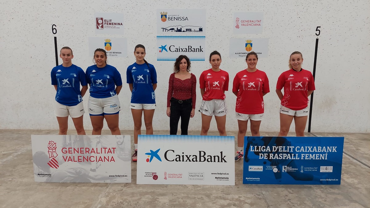 Aquest diumenge va arrancar la XVI Lliga CaixaBank de raspall d’elit femenina, la primera on les jugadores gaudeixen de contracte professional, amb el duel entre els equips d’Aida, Fanni i Marina, de roig, i Irene, Myriam i Júlia, de blau. El trinquet de Benissa va acollir una gran partida, en la qual les sis pilotaris jugaren molt a pilota i deixaren quinzes de gran nivell per al públic assistent, amb representació per part de l’Ajuntament de Benissa en la persona de la regidora d’Igualtat Lorena Ivars.