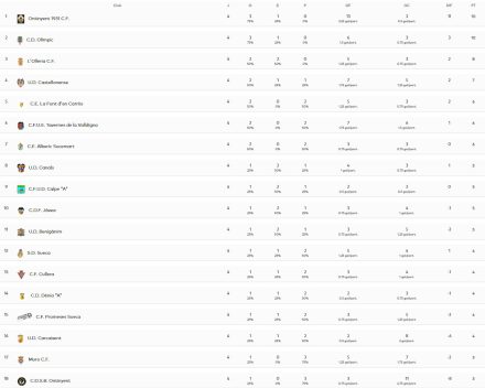 La cuarta jornada de liga llega a su fin y mirando la parte alta de la tabla hay que destacar que ha habido un relevo en el liderato. Por otro lado, hay que resaltar la primera victoria del curso para el Benigànim y el frenazo de l’Olleria al Olímpic.