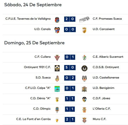 CF UE Tavernes de la Valldigna, 2; CF Promeses Sueca, 0.