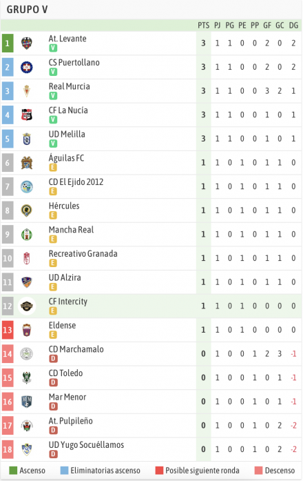 No le fue tan bien el estreno liguero al Hércules CF. El conjunto blanquiazul debutaba en casa pero no pudo sacar más que un empate al Recreativo Granada. Se adelantaron los locales en la primera parte con un gol del veterano Pedro Sánchez pero no pudieron mantener la ventaja hasta el final, pues la cantera nazarí hacía el empate en el 66, minutos después de la expulsión de Carlos David en el cuadro dirigido por Sergio Mora.