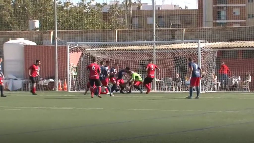 El Castellar Oliveral abrió el marcador tras aprovechar este pequeño lío en el área del Barrio del Cristo donde Sergio aprovechó para meter la pierna y marcar.